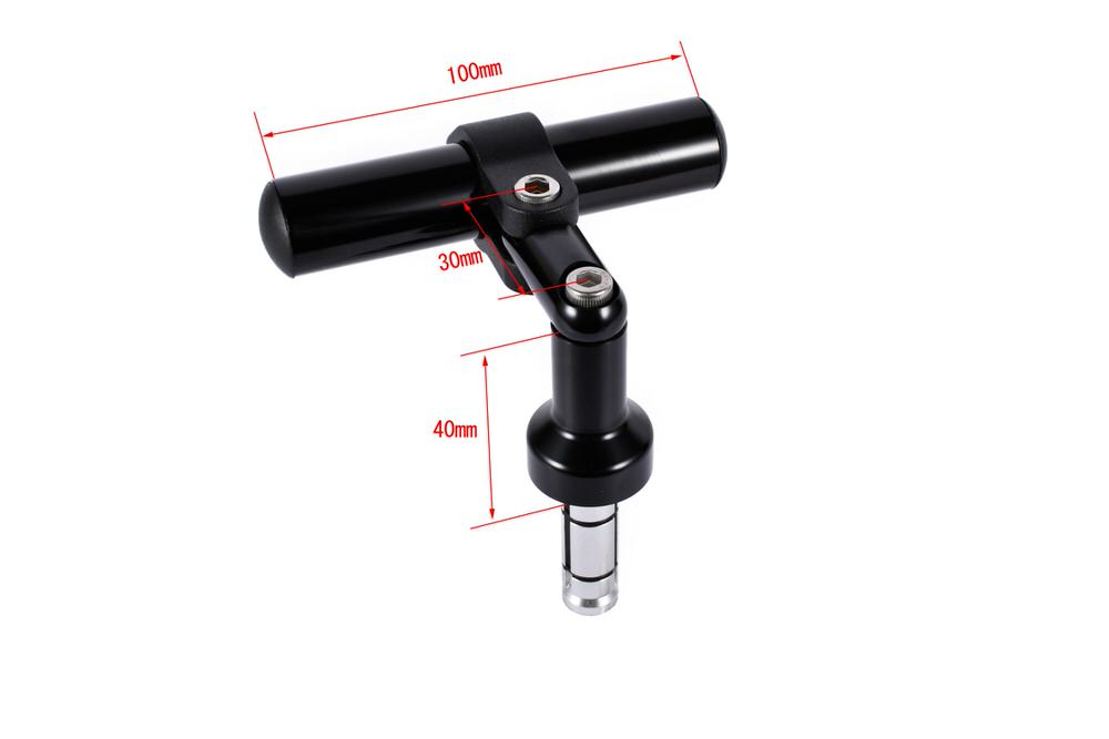 アルミ合金にアルマイト加工、軽量で高級感ある仕上がりを実現。貫通穴タイプのステムシャフト採用セパレートハンドル車両用となります。バーの外径は22.2mm、長さは100mmとなりますので、スマートフォンホルダーやETCステーなど取付可能です。クランプ固定により、マウントバーは左右調整可能です。好きな位置にフレキシブルな角度の調整が可能です。
