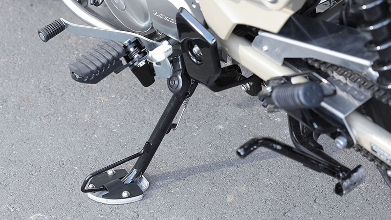 未舗装地などの駐車でサイドスタンドが沈みにくくなるワイドプレート。