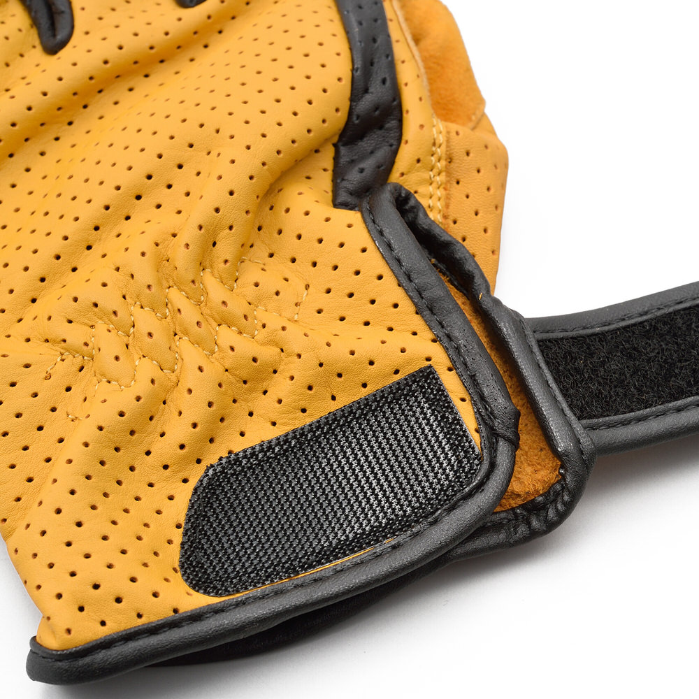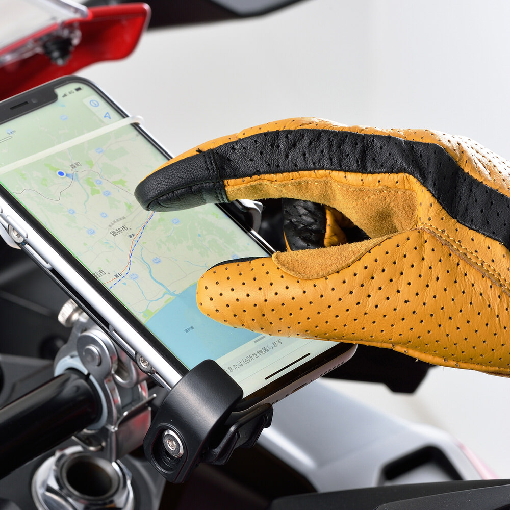 しっとり柔らかな牛革をフィット感の良い立体裁断で仕立てたライディンググローブ。パンチング部は裏地もメッシュ生地にすることで、通気性を確保しました。人差し指のタッチパネル対応部は側面まで回り込んでいるので、ストレスなくスマートフォンを操作できます。サイズ:XLサイズカラー:イエロー素材:牛革 / メッシュ生地パンチング / 春夏秋タッチパネル対応