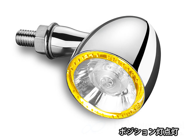 ケラーマン/Kellermannを代表するLEDウインカー Bullet 1000 PL/バレット 1000 PL。弾丸をイメージしたその形状はシンプルで疾走感を演出。シェルは金属製の高い質感を誇り、点灯部は外輪部とセンターの贅沢な構成。日本のグッドデサイン賞にあたる、「reddot award 2015」で最優秀賞を受賞。クラシックカーにさえベストマッチするプレミアムウインカーです。Bullet1000PL/バレット1000PLはポジションライトが外輪部に施されています。ウインカー点灯時には点灯側のポジション灯が自動消灯。ウインカー使用後 0.5〜1秒ほどで自動点灯します。※1つの躯体においてポジション灯とウインカー灯の同時点灯はしません。※取り付けはフロント専用となります。車検対応 協定規則 50号認可商品 eマーク E13 50R光源のワット数や照明部の面積を理由に不適合となることはありません。(協定規則50号の認可を受けている方向指示器/車幅灯であり、法第75条の3第1項の規定に基づき装置の指定を受けた方向指示器/車幅灯又はこれに準ずる性能を有する方向指示器/車幅灯である為) 車検時には本体に刻印または印刷されているEマークと50Rを提示してください。ウインカー用電圧 12v仕様車用12V ハロゲン仕様車両は別途 レジスター リレー が必要です。12V LED仕様車両の配線は純正置き換えで御利用いただけます。(5V-9V仕様車は昇圧ユニット i.SED V6 品番:KM123-966を別途お求めください。)ハイパワーLED仕様Long Life Protection Guard採用で低消費電力、長寿命化を実現高品質メタルハウジング採用 (住宅の外装にも使われる、軽量高耐久な積層ガルバリウム鋼板を採用)レンズカラー:クリアウインカー灯火色:橙色ポジション灯火色:橙色本体サイズ:50x40x55 mm取付部 M8x20※レジスターが必要な場合はメーカーサイト「Kellermann/ケラーマン レギュレータ検索」でご確認ください。 レンズ:クリアーウインカー灯火色:橙色ポジション灯火色:橙色
