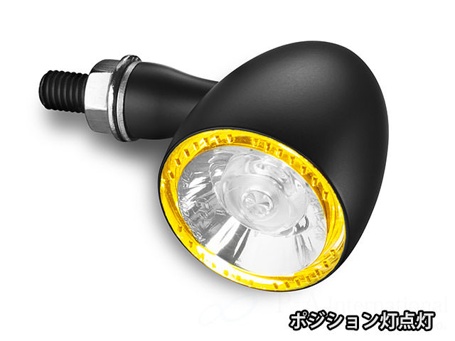 ケラーマン/Kellermannを代表するLEDウインカー Bullet 1000 PL/バレット 1000 PL。弾丸をイメージしたその形状はシンプルで疾走感を演出。シェルは金属製の高い質感を誇り、点灯部は外輪部とセンターの贅沢な構成。日本のグッドデサイン賞にあたる、「reddot award 2015」で最優秀賞を受賞。クラシックカーにさえベストマッチするプレミアムウインカーです。Bullet1000PL/バレット1000PLはポジションライトが外輪部に施されています。ウインカー点灯時には点灯側のポジション灯が自動消灯。ウインカー使用後 0.5〜1秒ほどで自動点灯します。※1つの躯体においてポジション灯とウインカー灯の同時点灯はしません。※取り付けはフロント専用となります。車検対応 協定規則 50号認可商品 eマーク E13 50R光源のワット数や照明部の面積を理由に不適合となることはありません。(協定規則50号の認可を受けている方向指示器/車幅灯であり、法第75条の3第1項の規定に基づき装置の指定を受けた方向指示器/車幅灯又はこれに準ずる性能を有する方向指示器/車幅灯である為) 車検時には本体に刻印または印刷されているEマークと50Rを提示してください。ウインカー用電圧 12v仕様車用12V ハロゲン仕様車両は別途 レジスター リレー が必要です。12V LED仕様車両の配線は純正置き換えで御利用いただけます。(5V-9V仕様車は昇圧ユニット i.SED V6 品番:KM123-966を別途お求めください。)ハイパワーLED仕様Long Life Protection Guard採用で低消費電力、長寿命化を実現高品質メタルハウジング採用 (住宅の外装にも使われる、軽量高耐久な積層ガルバリウム鋼板を採用)レンズカラー:クリアウインカー灯火色:橙色ポジション灯火色:橙色本体サイズ:50x40x55 mm取付部 M8x20※レジスターが必要な場合はメーカーサイト「Kellermann/ケラーマン レギュレータ検索」でご確認ください。 レンズ:クリアーウインカー灯火色:橙色ポジション灯火色:橙色