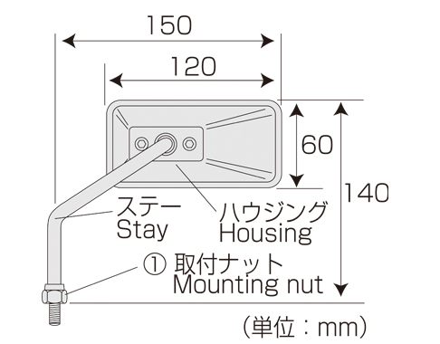色・材質:本体:ブラック鏡面:シルバー鏡材質:ABS樹脂+スチール部品構成:ミラー本体(左側)×1H19年以降の生産車は新保安基準 非適合しております。小さくても広い後方視界を確保する「曲面鏡」を使用。