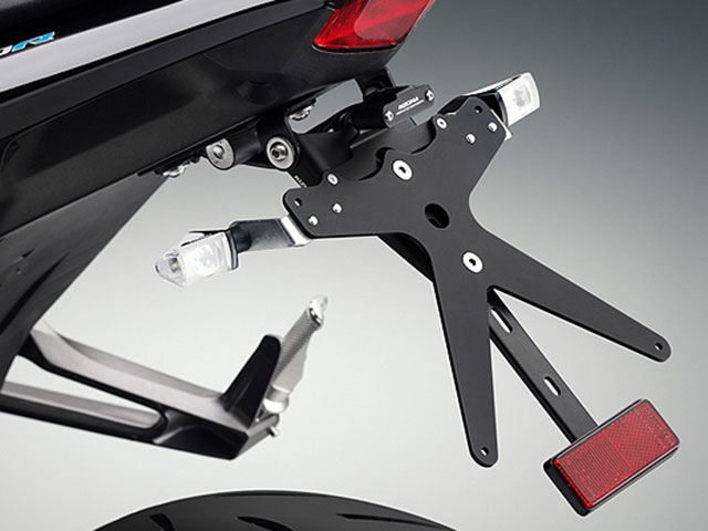 rizoma製フェンダーレスキット。各国のナンバープレートサイズに対応するライセンスプレートホルダー。LEDのナンバープレート照明も付属。プレートの保持位置や角度、リアウィンカーの取り付けなどが調整でき、満足のいく仕様となっています。付属品・ライセンスプレートホルダー 2組(欧州系、USA・日本系) (取り付け角度と位置が調整可能)※国内ナンバープレート取付の際には穴拡張加工(5mm程度)が必要です。・ライセンスプレート灯 (LEDライト)・ウインカー取付ステー (取付幅が調整可能 取付穴径 M8)・リフレクター (位置調整可能)CB 1000 R(08-10)CB 1000 R(11-14)CB 1000 R ABS(11-17)