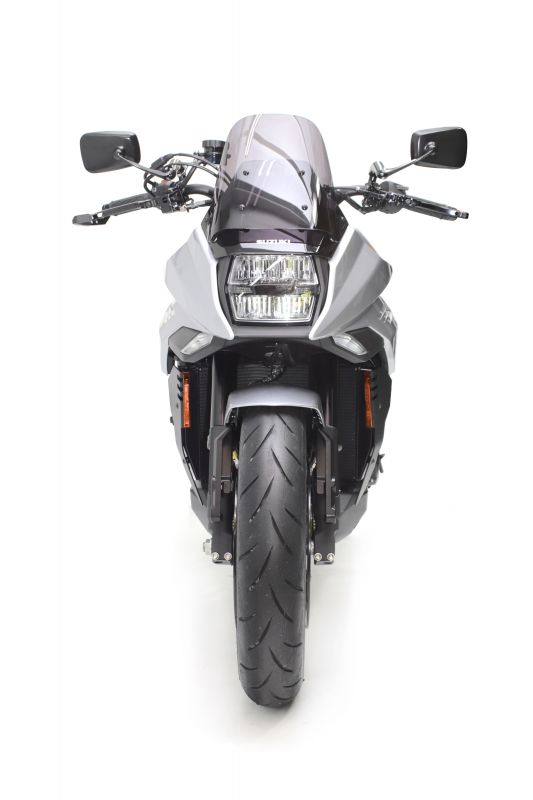 左右に張り出した純正ウィンカーを、ラジエターシュラウドに沿ったスリムタイプに変更することでウィンカーの破損リストを減らし、よりスタイリッシュに。ラジエターの冷却性能、整流効果に影響はありません。レンズ:スモーク