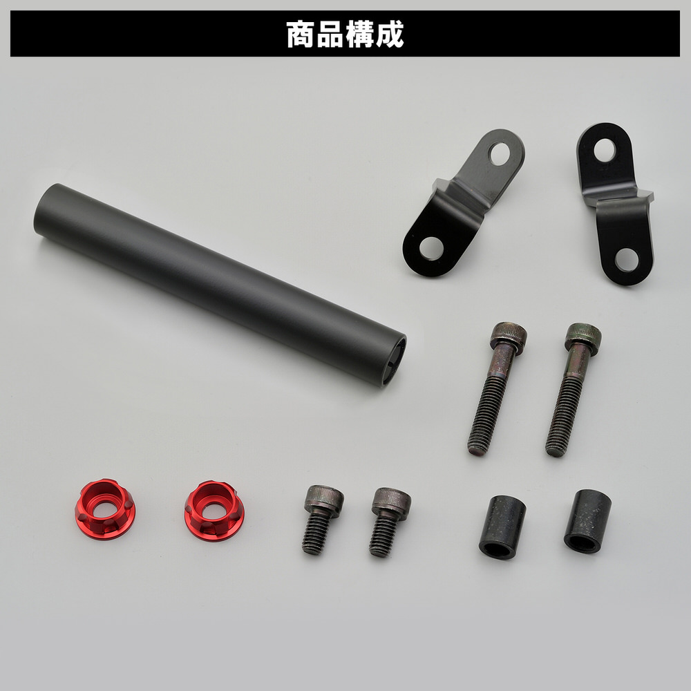 スマートフォンやナビゲーション、USB電源など、電子機器の取り付け場所に困るセパレートハンドル車用のマルチバーホルダー。車種別専用設計なので、電子機器を見やすく、スマートに取り付け可能です。マウントバー両端は分割式なので通すタイプのクランプにも対応します。マウントバー両サイドにはPREMIUM ZONEキャップボルトカラーM8を付属し、機能とルックスを両立。表面仕上げ方法の見直しにより塗装の耐久性が向上しました。バー有効長=155mmパイプ径φ22.2スチール製黒塗装仕上げ別売のキャップボルトカラーM8でカラー変更可能