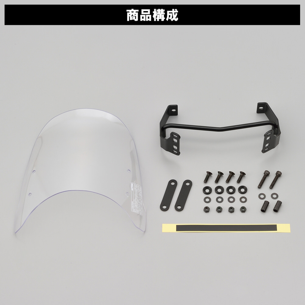 快適にツーリング&街乗りを。耐衝撃性を誇るポリカーボネート製だから、まさかの転倒時でも安心。ヘッドライト上部からもれる光の遮断シールをつけることで、シールドの反射を抑止。エアロバイザー取り付けを皿ビスにすることで、質感を向上させました。スクリーン部:ポリカーボネート製(3mm)遮断シール付属:ヘッドライト上部からもれる光を遮断してシールドの反射を抑止ステー部:スチール製黒塗装カラー:クリアー※ホンダ純正オプションのヘッドライトカウルとの同時装着不可。※スクリーンは傷つきやすいので、乾ぶきはしないでください。スクリーンが汚れた場合は、傷のつきにくいやわらかい布と中性洗剤を使用して多量の水で洗い流してください。※ガソリン・シンナー等有機溶剤・コンパウンド入りのクリーナー等は使用しないでください。※スクリーンは、太陽光を直接当てると、小さな領域に集光する光学的特性上、車体の他の部分に損傷を与える場合がありますので、直射日光が当たったままの状態で駐車しないでください。