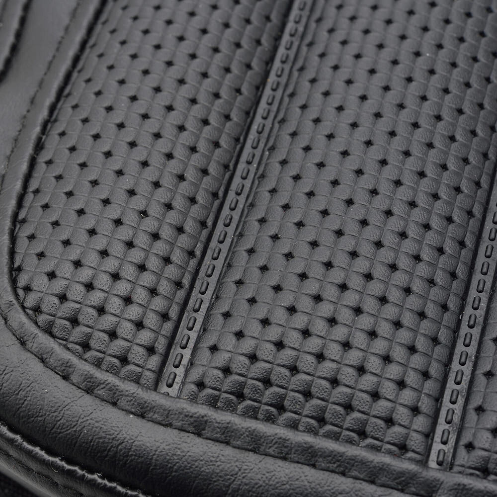 簡単にカスタムシートへイメージチェンジ。座面にメッシュレザー(ロール加工)をはめ込んだ、ハードイメージのシートカバー。純正シートに被せるだけで簡単にイメージチェンジできます。リア用メッシュレザー(ロール)とプレーンレザーの組み合わせ座面:メッシュレザー(ロール加工)裏側:面ファスナーと絞りコード付き※雨天走行時や洗車時に本製品へ水がかかると、縫製部分より水が浸入する可能性があります。※本製品はカバーのため定期的に取付状態の確認を行なってください。※カバーの厚み分シートが厚くなりますのでシートロックがかかりにくくなる場合があります。※純正シート専用です。