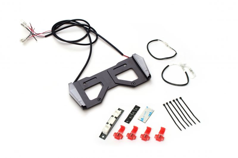 構想から5 年、「方向指示器」に関する複雑な法律をナンバーボルトで装着するだけでクリアできる” ALL in ONEパッケージ”。高性能LED チップの使用により、ウインカー形状・サイズが大幅に進化しました。発熱量が少なく非常に光度が高いLED チップ(片側24個) を採用したことで、レンズカットを施さなくてもレンズ全体が発光し視認性がさらにUP。意匠登録出願中。レンズ配線を上部裏側もしくは真横から取り出すことができ( 前モデルは下から) すっきりと収納。基盤への防水ポッティング化と、乳白色ベースへの裏ショット加工により点灯していない時の質感も向上。【仕様】 レンズカラー:ホワイト消費電力(w):12V 2.2W-13.5V 3.4W・アルミ製コンパクトステー【付属品】 セラミック抵抗:14.3Ω×1配線クリップ、タップ×各4タイラップ 80mm×6赤配線、黒配線×各1