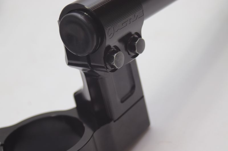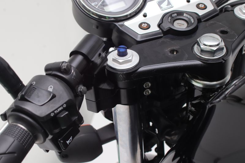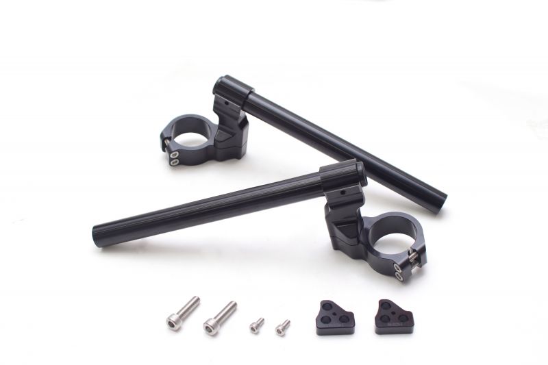 付属するスペーサーを取りはずせばさらに低くなり、スポーツ走行を楽しめます。フロント荷重をかけやすい姿勢を実現するハンドルキット。スタンダード…ワインディングを楽しむスポーツライディングに最適ロー…ハンドル位置がさらに低くなり、サーキットでの“攻める走り”に最適垂れ角:5°バー長さ:220mm材質:アルミ6061材ブラックアルマイトバーエンド(別売となります。)、インナーウェイトΦ13-17用対応(別売となります。)クランプ径:Φ43