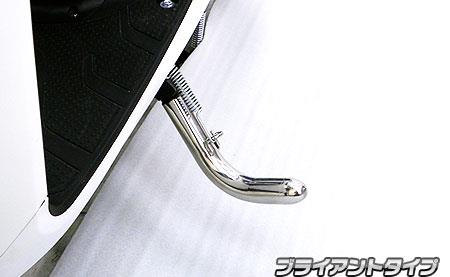 ローダウンはスクーターカスタムの定番となっておりますが、その際にノーマルスタンドですと掛けた際に車体の傾きが足らずに、不安定な状態になってしまいます。ローダウンして車高を下げる場合には、同時にスタンドもローダウンに対応するものに交換することをオススメします。車体への取り付け部分は、粘りがあり破断しにくい「鉄」を採用し、バーの部分は錆に強い32mm径の極太、硬質ステンレスを採用しています。ステンレス部分にはバフ仕上げが施してあり、高級感の高い仕上がりとなっております。10〜20mmのローダウン車両に使用可能