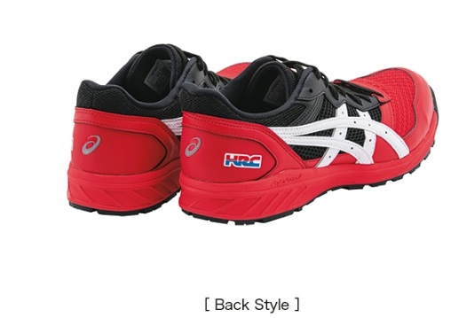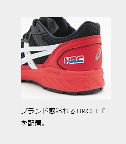 アシックスコラボのワーキングシューズHRCのワークススタッフ着用品と同モデル。ブランド感溢れるHRCロゴを配置。素材甲材:人工皮革、合成繊維底材:ゴム底
