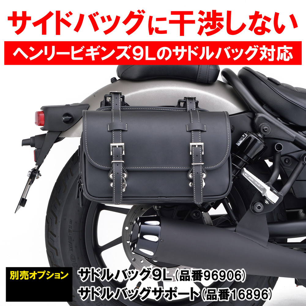 個性的なアルミ削り出しテールコーンを採用したスリップオンマフラー。重量は純正マフラーに比べ約1/2の軽さ。6000rpm以上の吹け上りとパワー特性に優れる高回転型です。Henly Beginsのサドルバッグ9L(96906/98883)+サドルバッグサポート(16896)の同時装着が可能。近接騒音測定値:91dB/4750rpm、加速騒音値:81dBで、平成19年排ガス規制と平成22年騒音規制に対応した政府認証マフラーです。対応車種:Rebel250/ABS(17〜20)/S Edition(20)マフラー重量:2.4(純正マフラー4.6を約48%軽量化)平成19年排ガス規制 / 平成22年騒音規制対応 政府認証マフラーマフラー本体:スチール製マットブラック塗装 / テールコーン:アルミ製アルマイト仕上げ(コントラストカット採用)Henly Beginsサドルバッグ9L(96906/98883)+サドルバッグサポート(16896)の同時装着が可能