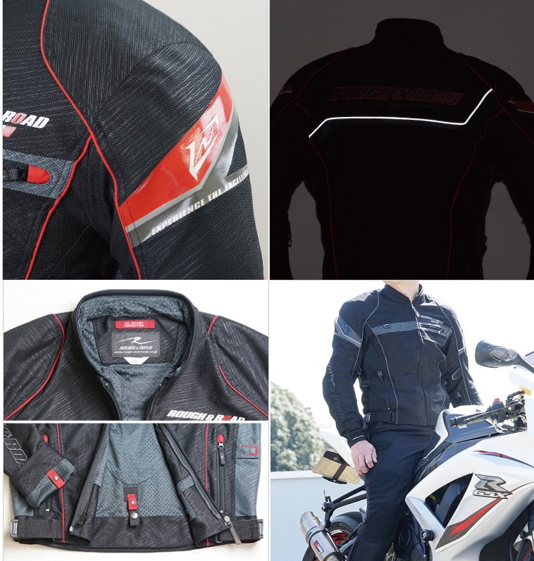 RR7346 フルメッシュジャケットFP スラッシュ-レッド Mサイズ ラフアンドロード(Rough&Road)