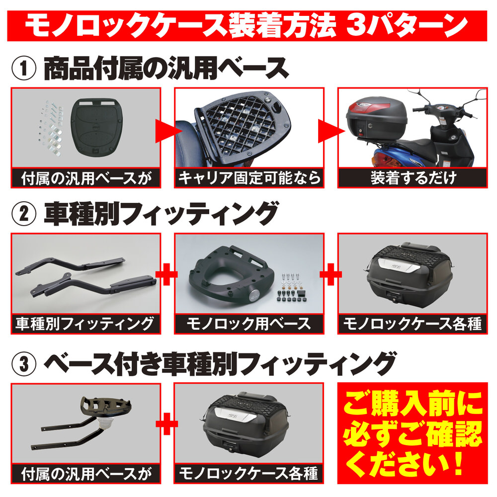 収納容量42LのGIVIモノロックケース。汎用ベースが付属しています。