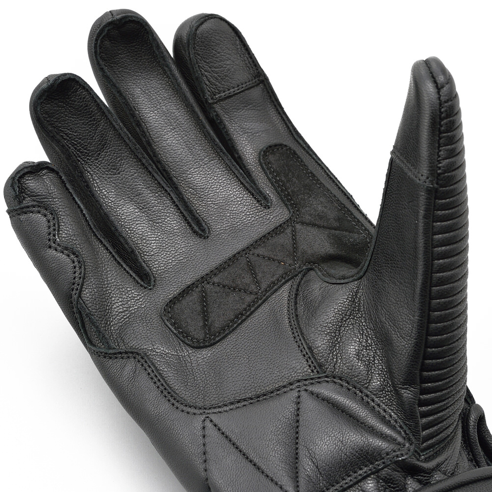 高い保護性能を発揮するハードプロテクタータイプのヴィンテージ風グローブ。本革にワックス加工を施すことでヴィンテージ感を与えた、クラシカルなテイストのグローブです。指先のシャーリングと手の平の外縫い仕上げは、よりカフェレーサーらしさを演出するとともに握り心地を向上。手の平と指又の革を薄くすることで、高いフィット感を実現しています。ハードナックルプロテクターは、高い保護性能を発揮します。サイズ:Lサイズカラー:ブラック素材:やぎ革 / プロテクター:TPUシーズン:春夏秋タッチパネル対応※タッチパネルの感度はグローブとの密着度や個人差により感度にバラつきがあります。