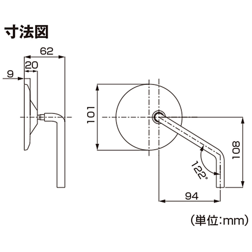 アルミハウジングにコントラストカットを施したハーレーダビッドソン用ミラー。オーソドックスなラウンド形状にモダンなテイストを加えたハウジングを採用。振動に強く後方視界に優れる、直径12mmの極太ロングロッド。ハーレーダビッドソンの他、付属の10mmアダプターで国産車にも装着可能。ハウジング:アルミ製ブラックアルマイト&コントラストカット鏡面:曲率R1250のクリアーミラー左専用の片側1個入りアルミ製ハウジング:シャープなデザインのコントラストカット / 曲率:R1250 クリアーミラーブレない極太ロッド:直径12mmのロッドで振動の多いバイクでもミラーがブレにくい110mmのロングロッド:鏡面が外側になることによって、腕や肩が視界を遮らないミラーアダプター:ハーレーダビッドソン用+10mmネジ用でハーレーと国産車に装着可能※HDアダプターを使用する場合は2007年以降新保安基準適合。※10mmアダプターを使用する場合、鏡面積は新保安基準に適合したサイズですが衝撃緩衝装置が無いため、新保安基準適合外となります。※ハンドル下側に装着する場合は、左右のミラーを反転させてください。