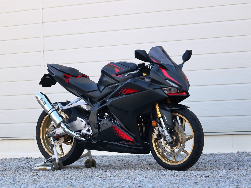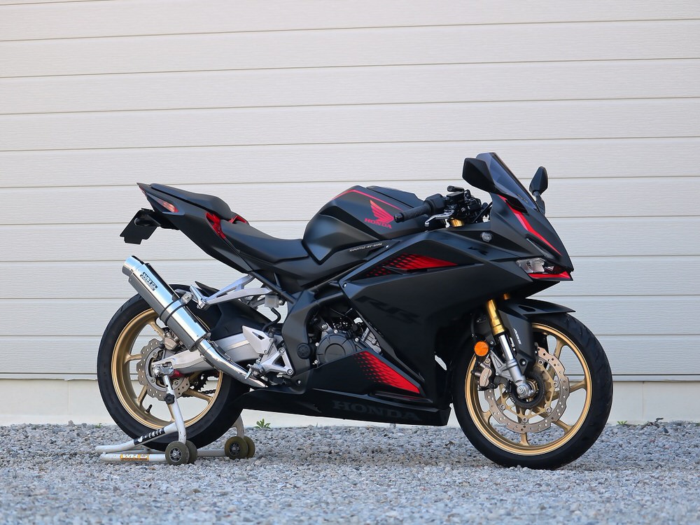 ベンチテストにより徹底的に性能をチェック、20〜CBR250RRはエンジンパワー等、前モデルとは全く異なるスペックを持つ事からダブルアールズ社は、20〜CBR250RR用に新設計としてサイレンサー構造を含めて完全専用設計。ノーマルを遥かに凌ぐパワーフィールを持つ、『ハイパフォーマンスマフラー』に仕上げております。ノーマル時のギクシャクするエンジンブレーキも緩和しており、低速域から高速域まで力強いパワー感を堪能下さい。低音の効いた音質は心地良く、マイルドな音質に仕立てています。近接/加速騒音値:92dB/79dBOF/Dボルト:OKJMCA認証ボルト類含む総重量:4.17kg(ノーマルマフラー総重量は7.96kg)