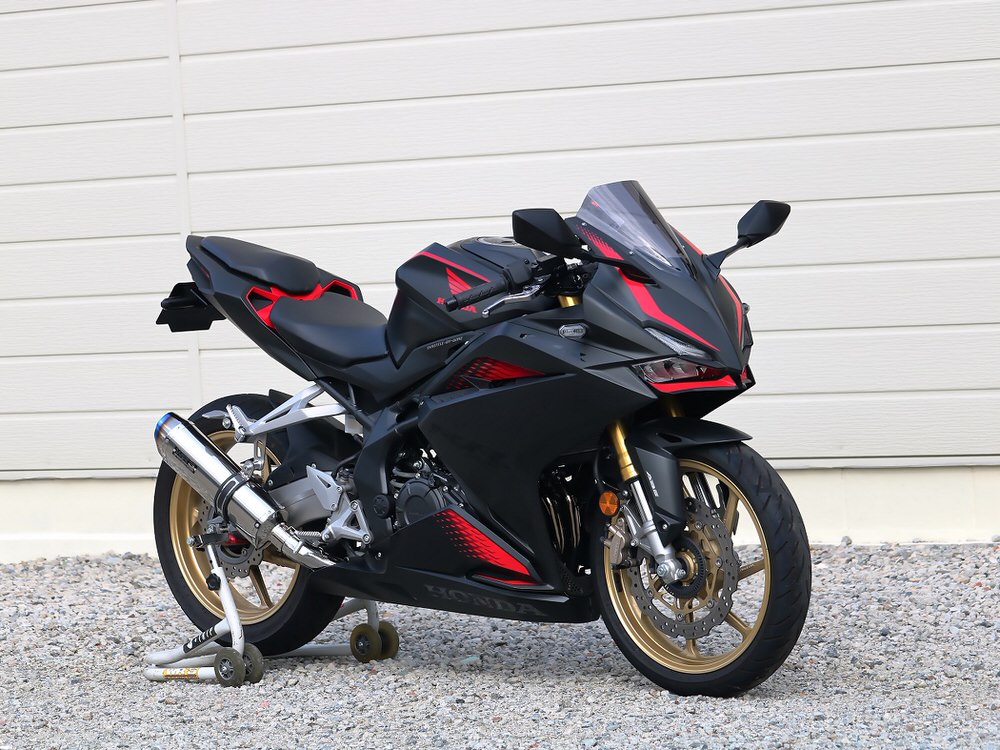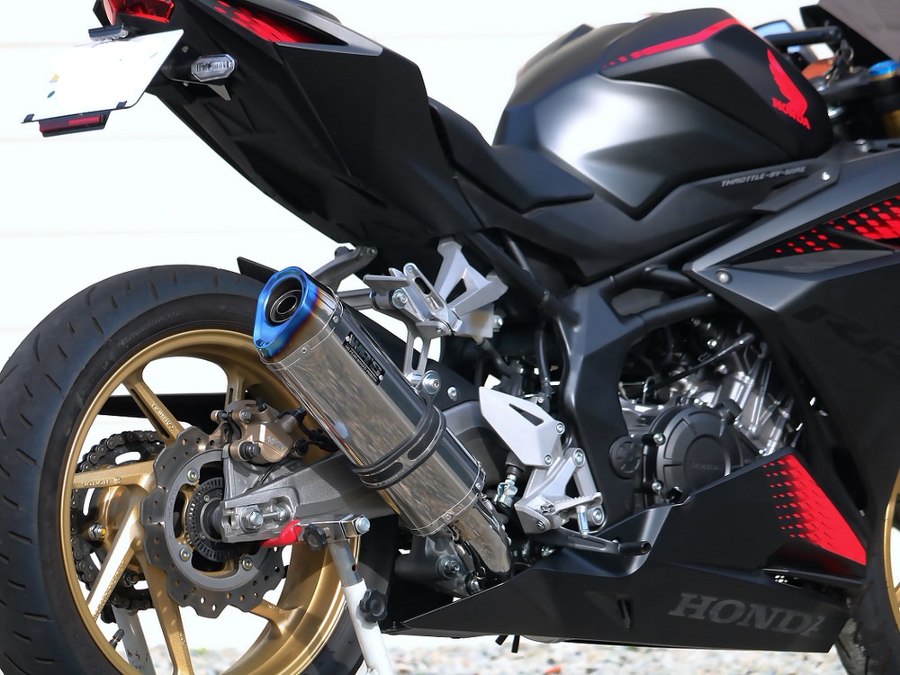 SS-OVAL SHORT_LINEフルエキゾーストはSTDフルエキゾーストと一線を画し、「ダウン&ショート」スタイルを持つフルエキゾーストで、十分過ぎるパフォーマンスは勿論、独特なスタイルで前モデルから人気の商品となります。ノーマル時のギクシャクするエンジンブレーキも緩和しており、低速時にアクセルを戻した時のギクシャク感も皆無。スタートからスムーズな発進と力強い加速感でCBR250RRの持つ性能を存分に発揮してくれる事と思います。音質は重低音かつワイルドな音質に仕上がっており、レースシーンを彷彿させながらもJMCA認証マフラーとして音量はしっかりクリア。安心してワイルドな音質を楽しんで頂けるマフラーです。近接/加速騒音値:93dB/81dBOF/Dボルト:OKJMCA認証ボルト類含む総重量:4.19kg(ノーマルマフラー総重量は7.96kg)