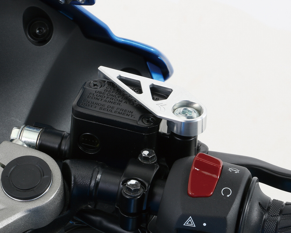 万一の転倒によるマスターシリンダーへのダメージを軽減することとドレスアップを兼ねたガードです。アルミ削り出しアルマイト仕上げ取付ボルト、カラー付属