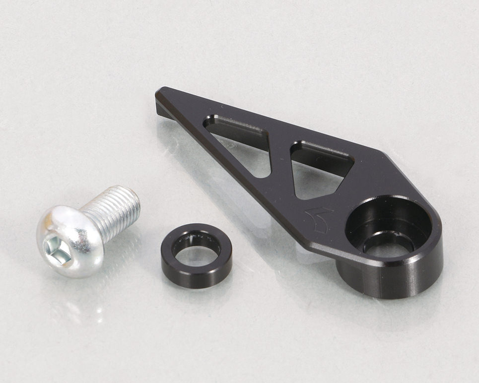 万一の転倒によるマスターシリンダーへのダメージを軽減することとドレスアップを兼ねたガードです。アルミ削り出しアルマイト仕上げ取付ボルト、カラー付属