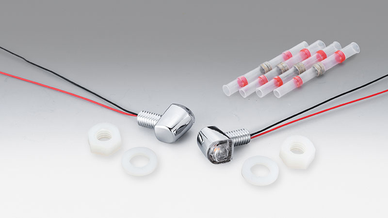 ボディーサイズ 9.8×9.8×14.2mmの極小LEDウインカーランプです。サイズからは想像出来ないほどの発光量で視認性も抜群です。Eマーク取得済(50R)なので車検にも対応しております。※ウインカーの装着状態等により車検に通らない場合がございますのでご注意ください。※ウインカーやインジケーターの点滅状態が異常となる場合は、ICウインカーリレーやレジスター等による対策が必要です。【本体サイズ】9.8mm×9.8mm×14.2mm【取付けボルト】M6×10mm【本体材質】アルミダイキャスト【本体色】クロームメッキ【入り数】2個【消費電力】12V1.5W【認証番号】50R-000334
