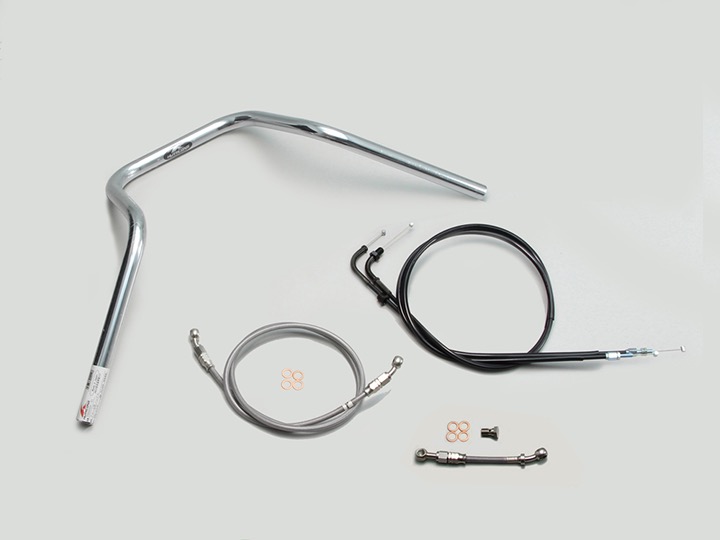 付属:ハンドル・スロットルケーブル・クラッチホース・ブレーキホース別途:サイドキャップ(内径φ18mm)が必要ハンドルの穴開け加工が必要