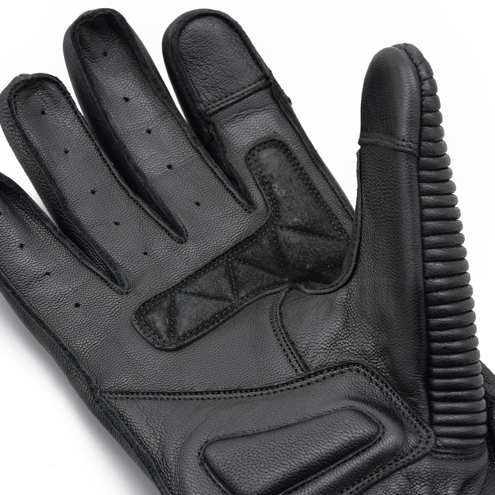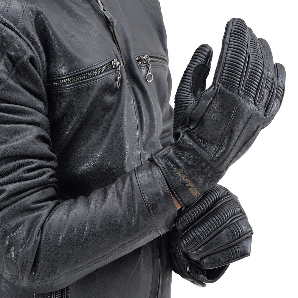 操作感に優れるヴィンテージ風グローブ。本革にワックス加工を施すことでヴィンテージ感を与えた、クラシカルなテイストのグローブです。指先のシャーリングと手の平の外縫い仕上げは、よりカフェレーサーらしさを演出するとともに握り心地を向上。手の平と指又の革を薄くすることで、高いフィット感を実現しています。カラー:ブラック素材:やぎ革シーズン:春夏秋タッチパネル対応※タッチパネルの感度はグローブとの密着度や個人差により感度にバラつきがあります。