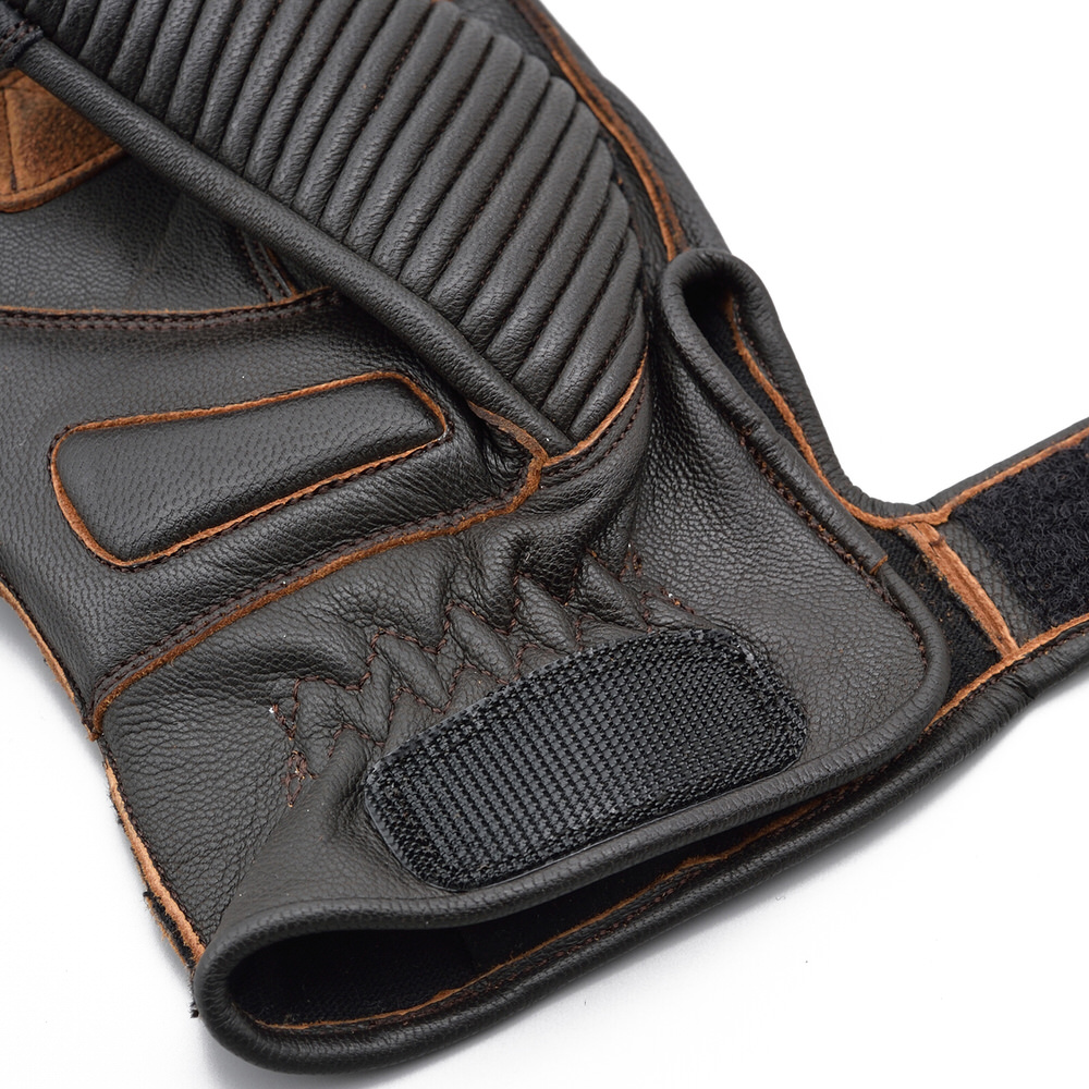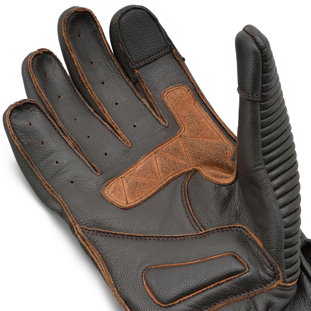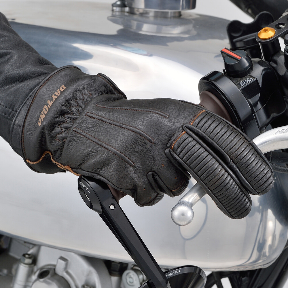 操作感に優れるヴィンテージ風グローブ。本革にワックス加工を施すことでヴィンテージ感を与えた、クラシカルなテイストのグローブです。指先のシャーリングと手の平の外縫い仕上げは、よりカフェレーサーらしさを演出するとともに握り心地を向上。手の平と指又の革を薄くすることで、高いフィット感を実現しています。カラー:ブラウン素材:やぎ革シーズン:春夏秋タッチパネル対応※タッチパネルの感度はグローブとの密着度や個人差により感度にバラつきがあります。
