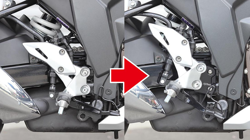 ノーマルステップを生かし、ステップポジションを変更します。お手軽にお好みに合わせたポジション(2ポジション)が選択可能です。※シフト操作時の干渉を避ける為、サイドスタンドのエクステンション部をカット又は曲げる加工が必要となります。移動量】42バック/25.5アップ・40バック/13アップ(mm)【材質】アルミビレット(本体)【色】ブラックアルマイト