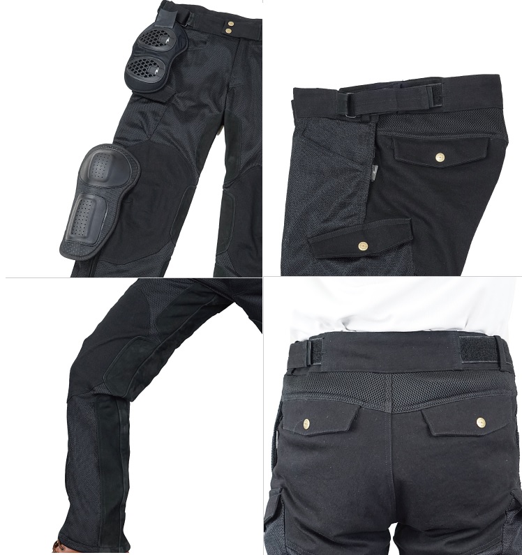 プラスチックニーシンガードに新形状のウエストサイドパッドを装備し、プロテクション性能がさらに向上しました。 また、要所要所にヌバックレザーを採用したことにより、ニーグリップを向上させると共にエンジンの熱風からライダーの内股を守ります。 バイク専用立体構造と着座部や転倒時の耐擦過性を考慮し、ヒップにはヘビーコットンを採用しました。 股部分にはストレッチ素材を採用し、脚が大きく開き動きやすい仕様。ウエストサイド、ヒザにプラスチックプロテクター標準装備。ウエストはルーズフィット機能により無階段にアジャスター可。ニーグリップ、ヒップガード付き。ウエスト内側デザインRR10093フレックスウエストサイドパッド標準装備軽量・衝撃吸収性に優れたハニカム構造。シルエット: ストレートフィットSIZE(inch): LW-short(34-40/股下73-79cm)MATERIAL: ポリエステル、ポリエステルメッシュ、ヌバックレザー【スパックスメッシュEXTRA】ライディングウェアに最適な高強度素材。立体構造のため、直射日光を遮断し紫外線を防ぎ通気性も抜群。耐久性としなやかさを両立したメッシュ素材のため、長時間のライディングでもストレスを感じさせません。
