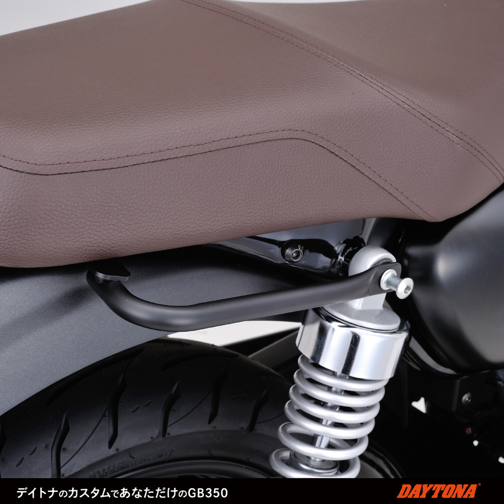GB350専用のタンデムグリップ。シート交換など、純正グラブバーを取り外すカスタムを?なった際に必要となるタンデムライダー?アシストグリップです。対応車種:GB350(21) 右側専用パイプ径:φ15.9スチール製ツヤ消し黒塗装仕上げ純正シート併用可能※純正ヘルメットホルダーの移設はできません。※サドルバッグサポート(16888/16889)との同時装着不可。※ステンレスショートリアフェンダーとの同時装着不可。※GB350S(21)不可。