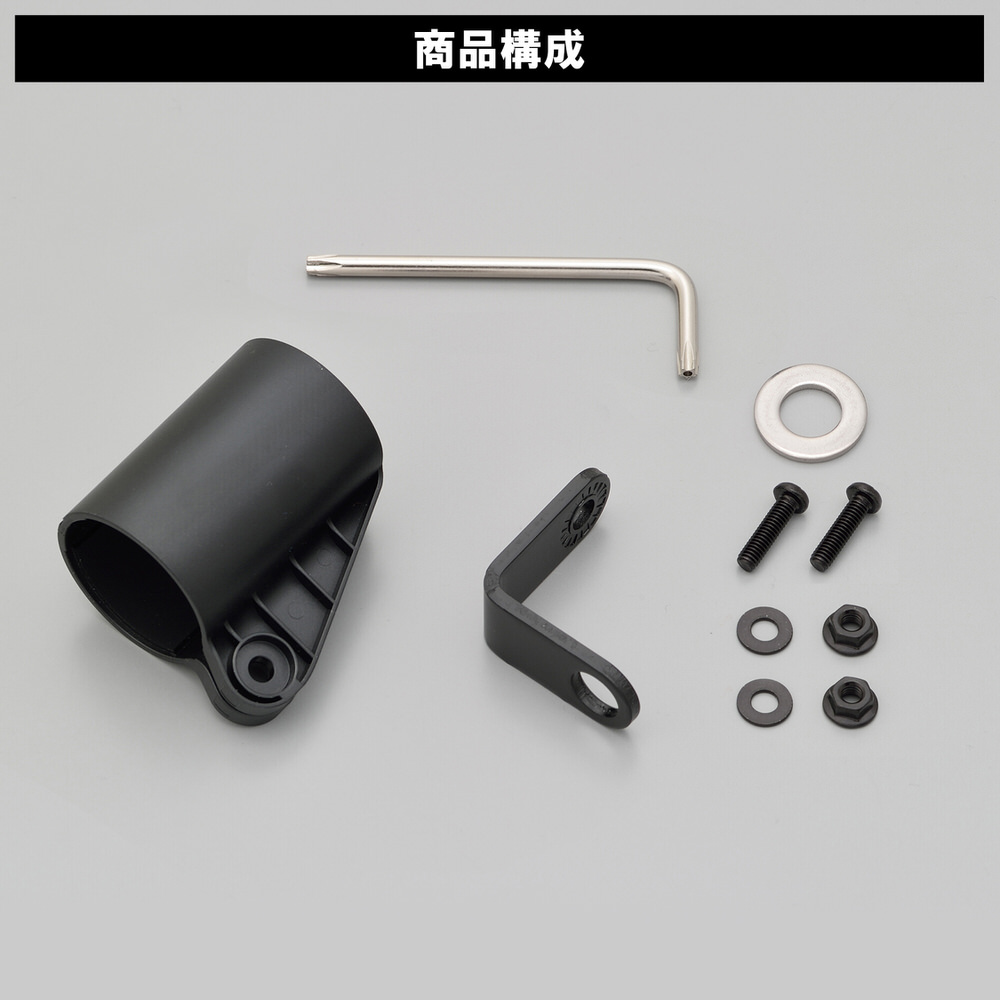クランプ:樹脂製 / ミラーホールステー:アルミ製黒アルマイト仕上げ