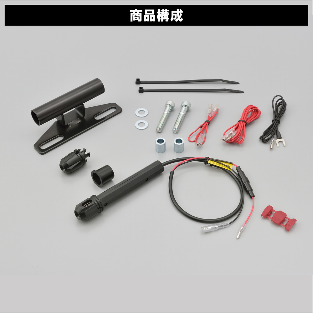 マルチバーホルダーにUSB電源が付いてハンドル周りスッキリ。マルチバーホルダーにUSB Type-Cの電源を組み込みました。ホルダースペースを有効活用できます。PREMIUM ZONEのバーエンドをイメージしたスタイリッシュなデザイン。USB PD 3.0で急速充電に対応。回転式のキャップでコネクターを水やほこりからガードします。ハンドルポスト左右ピッチ60-110mmに対応。M8ボルト、M8ワッシャー、カラー付属。ボルトカラーセット インチ(77439)と併用で、ハーレーダビッドソンのハンドルポストにも装着可能(一部車種を除く)。【USB Type-Cコネクターで急速充電】USB PD(パワーデリバリー)対応で最大18W(5V/3A、9V/2A、12V/1.5A)出力可能。【ブレーキスイッチに接続するだけのカンタン接続】メインキー連動でバッテリー上がりの心配なし。ブレーキスイッチとフレームのボルトに共締めするだけの簡単取り付け。【USB電源とマルチバーホルダーが一体化】クランプスペースを確保しつつ、電源が内蔵されることでハンドル周りがスッキリ。USB Type-C 急速充電対応(USB PD3.0対応/最大18W)ブレーキスイッチに接続するだけのカンタン取付ハンドルポストクランプ:左右ピッチ60-110mmパイプ径φ22. 2/全長100mm/高さ34.3mm※付属のボルト、ワッシャー、カラーで取り付けできない場合は、車両に合わせ別途ご用意ください。