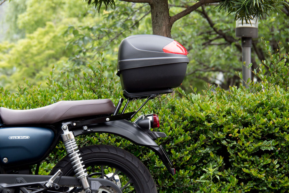クラシックな雰囲気が特徴のホンダGB350。車両デザインにマッチする、スクエア型の天板が特徴のリアキャリア。真上から加わる力の耐久性を高めるため、補強部分の設計に拘ったリアキャリアです。剛性をしっかり確保した強度のあるスチール製材質は強靭なスチール製。最大積載量は5Kgと、大型のリアボックスも難なく積載可能です。 もともと積載しやすい形状をしているGB350ですが、更なる積載アップでキャンプツーリング等にも活躍しそうです。車体の形状に合わせたスクエア型の天板GB350のテール部分の形状に合わせスクエア型の天板に。シートと高さを揃えているので長物の積載にも役立ちます。また、リアキャリアを取り付けてもタンデムグリップを握る事ができる形状になっております。※積載物の形状によりますこだわりのフレーム構造天板を支える4本のフレームは横からみると台形型に補強を入れた構造になっております。あえて平行でない構造にする事により、強度を確保し天板からの負荷に強い造りにしています。◆お得なリアボックスセットキャリアがあったら、まず取り付けしたいのはリアボックス。本来であれば別売りのインナーも付属した、大変お得なセット販売です。■ボックスサイズ30L■セット内容・リアキャリア・リアボックス(サイズを4種類よりお選びください。)・ボックスインナー