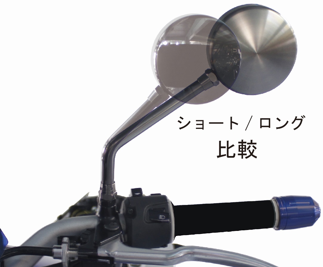 ■従来品より約40mm程度の張り出しと1200R凸ミラーで視界良好!■ボディ・ステー・ジョイントはアルミ削り出しアルマイト/メッキ仕上げ。■ミラー本体は大幅に肉抜きし軽量化。■ステー部は13Φと太くし、車体取付け側ボルトは削り出し一体式にせず、ステンレス材スタットボルトを使用し振動からの強度を保てる仕様になっております。■メッキ・ブラックメッキは樹脂にメッキした製品とは一味違う光沢をお楽しみいただけます。■左右共通■鏡面サイズ:φ79mm 1200R凸ミラー採用■M10/P1.25 正ネジ※平成19年1月1日以降に製造された車両には、当製品は保安基準適合外となり、公道での使用、及び車検には対応できません。