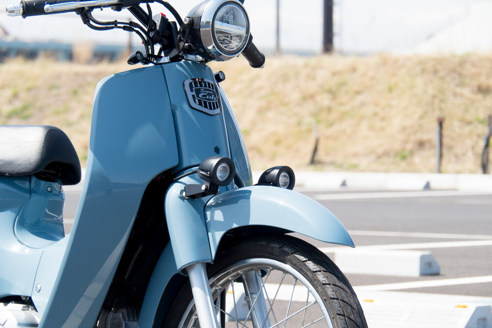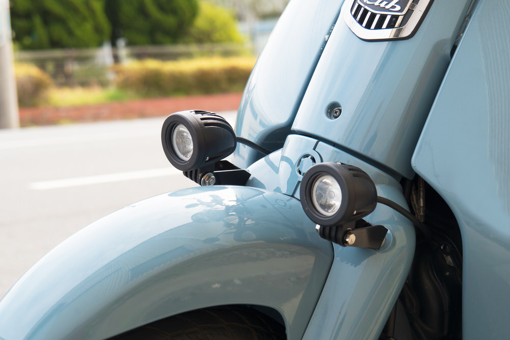 ・付属品:フォグランプ本体/ステー(左右)/配線/取り付けボルト類/スイッチ・スマホマウントバー/取扱説明書/・材質:ランプ本体…アルミ ステー…スチール(カチオン塗装)・作業時間:1h普段の街乗りはもちろん、ツーリング需要も増えてきているスーパーカブ110。10WのLEDを使用した圧倒的な明るさで夜間の視認性を高めます。フォグランプの防水スイッチをマウントする付属のステーには、スマホフォルダの取り付けも可能。1セットで2つの役割を果たしてくれ、実用性抜群のフォグランプキット。日常に欠かせないアイテムになる事間違いなしです。ハンドルクランプ防水スイッチハンドルにクランプする防水スイッチを付属。雨天時でも安心してお使い頂けます。※ノーマル車両には付属のマウントバーに取り付けてください。10Wの高輝度LEDを採用光源には10WのLEDを採用。夜道の安全を確保します。遠くを明るく照らしたい夜間や悪天候時の視認性も大幅に向上させます。商品ページトップ画像をスライドすると比較画像がご覧いただけます!本体はアルミボディ、シンプルな砲弾型本体は軽量で耐腐食性に優れたアルミを採用。形状はシンプルな砲弾型なので、どんなカラーの車種でも違和感なく馴染みます。もしもの時の安心配線を誤ってしまったり、ショートさせてしまった際の為にハーネスや本体が壊れないようにヒューズを配置しました。ハーネス内にリレーを配置安定した動作が必須のフォグランプ。動作の安定性向上と、電流が過剰に流れるのをを防ぎます。マウントバーが付属放水スイッチやお持ちのスマーフォンを取り付ける為のマウントバーがセット内容に含まれております。スーパーカブ110の純正ハンドルでは防水スイッチの取り付けが出来ない為、嬉しい仕様に!