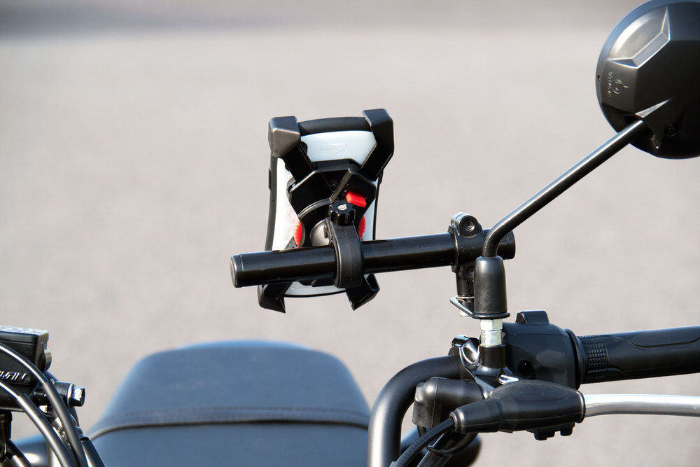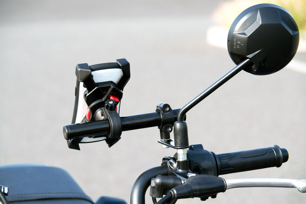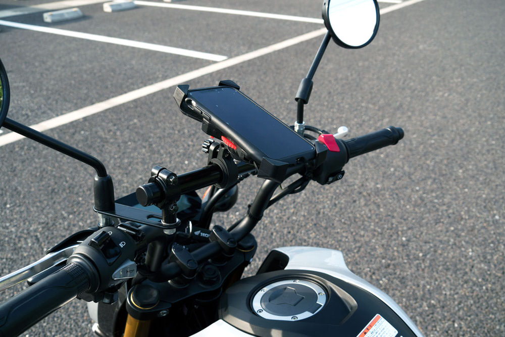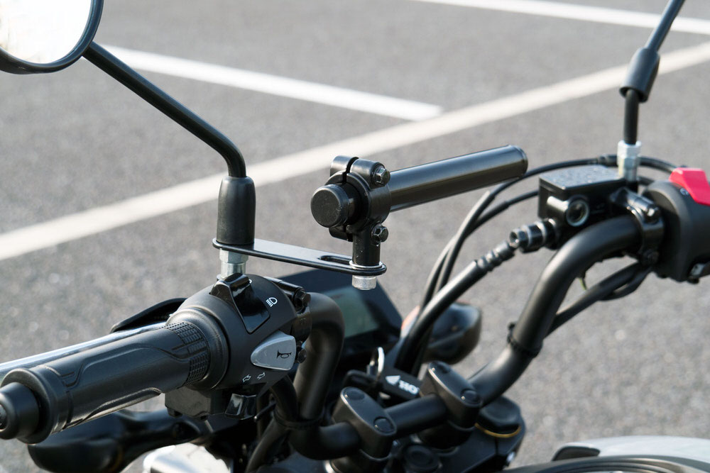 ・付属品:バー本体・取扱説明書・材質:バー…スチール ホルダー…アルミ ステー…スチール ボルト…ステンレス・作業時間:0.5h■一昔前のツーリングではタンクバッグなどに地図を入れておくのが一般的でした。しかし現在は携帯電話の電波が山の上まで届くようになったり、電波がなくても使えるスマートフォン用のナビゲーションアプリが登場するなど、スマートフォンをナビ代わりに使用するのが一般的となってきました。スマートフォンをハンドルに固定する為のスマートフォンホルダーは様々なメーカーから販売されていますが、実際にハンドルに装着しようとするとスペースが無くて困る事があります。そのため様々なメーカーからスマートフォンホルダーを装着するスペースを作るパーツが販売されていますので、完全な「後だしジャンケン」ですが他社をしっかりと研究して強度、デザイン、価格のバランスが取れた製品のスマートフォンマウントバーの開発をしました。■安心の車種専用設計他の多くのメーカー製品は汎用品となっており、車種専用設計とはなっておりません。しかし汎用品では耐荷重を保証する事はできません。車種ごとに取り付け方法を検討し最適な部材で取り付けする方法を選択している為、耐荷重の設定に成功しています。■耐荷重は650g。ナビゲーションシステムもマウント可能です。耐荷重は650gまで対応する設計としました。具体的にはナビゲーションシステムと取り付けステー、若しくはドリンクホルダーと500mlの飲み物程度となります。■バーはスチールのカチオン塗装仕上げ、クランプは軽量はアルミを採用しました。バー部分はスマートフォンホルダーの脱着を繰り返す事を前提に素材を選定しました。そのため素材には硬度に優れたスチールを採用し、耐食性、耐湿性に優れ錆などに強いカチオン塗装で仕上げています。バーをクランプする部分は軽量で耐食性に優れたアルミを採用しました。バーを黒のカチオン塗装で仕上げているので質感を合わせてクランプも塗装で仕上げています。■取り付け用ボルト類はステンレスを採用脱着はそう難しくないと言えど、バイクに乗るたびに取り付けするのは流石に面倒です。常に風雨にさらされるパーツですので、ボルト類はサビに強いステンレス製を採用しています。