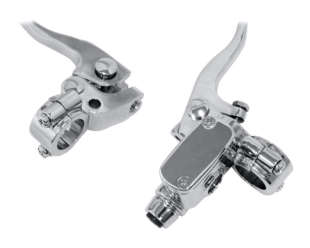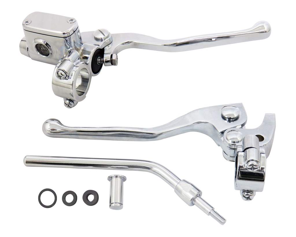 色:クロームサイズ:ボア径:7/16インチ クランプ:1インチバンジョーボルトサイズ:7/16-24ハンドルクランプ部ボルトサイズ:1/4-20×1in適合車種:1インチハンドルを装着した、4速および5速以降モデル※主にシングルキャリパー車用素材:アルミ内容物:ブレーキコントロールAssy×1クラッチコントロールAssy×1専用ミラーステム×1DOT4用シール×2注意事項:取り付け前にスラッジ等の確認・洗浄を行って下さい。マスターのトップカバーは締め付け過ぎないようご注意下さい。ブレーキレバーのハンマーがピストンを押さえる構造になっており、車体に装着状態でブレーキレバーを外すとピストンが出てきてしまうことによって、フルードが漏れ出す恐れがございますのでご注意下さい。DOT4を使用する際には付属のシールに交換して下さい。※取付イメージ画像はブラックになります。純正ハウジングに準じたミラーステムは対応していません。付属のミラーステムをご利用下さい。商品説明:ハンドルまわりをすっきりとさせるカスタムに最適な、シンプルなデザインを追及したハンドコントロールキットです。オールドスクールチョッパーとの相性も抜群!美しいクロームフィニッシュで、カスタムをさらに演出します。ピボットと入れ替えてお使い頂ける専用のミラーステム付属!4速&5速以降のクラッチケーブルに対応するピボットピン付属!シングルディスク車向けのマスターボアとなっております。