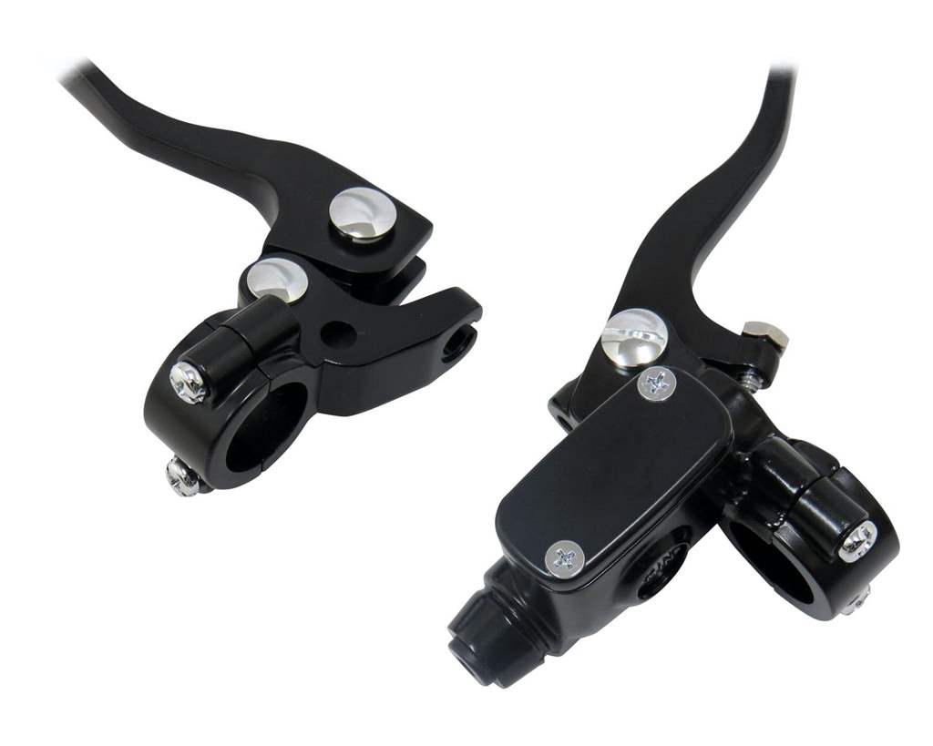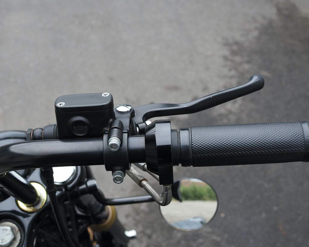 色:ブラックサイズ:ボア径:7/16インチ クランプ:1インチバンジョーボルトサイズ:7/16-24ハンドルクランプ部ボルトサイズ:1/4-20×1in適合車種:1インチハンドルを装着した、4速および5速以降モデル※主にシングルキャリパー車用素材:アルミ内容物:022950 ブレーキコントロールAssy×1015928 クラッチコントロールAssy×1015936 専用ミラーステム×1DOT4用シール×2注意事項:取り付け前にスラッジ等の確認・洗浄を行って下さい。マスターのトップカバーは締め付け過ぎないようご注意下さい。ブレーキレバーのハンマーがピストンを押さえる構造になっており、車体に装着状態でブレーキレバーを外すとピストンが出てきてしまうことによって、フルードが漏れ出す恐れがございますのでご注意下さい。DOT4を使用する際には付属のシールに交換して下さい。※取付イメージ画像はブラックになります。純正ハウジングに準じたミラーステムは対応していません。付属のミラーステムをご利用下さい。商品説明:ハンドルまわりをすっきりとさせるカスタムに最適な、シンプルなデザインを追及したハンドコントロールキットです。オールドスクールチョッパーとの相性も抜群!シックなブラックフィニッシュで、カスタムをさらに演出します。ピボットと入れ替えてお使い頂ける専用のミラーステム付属!4速&5速以降のクラッチケーブルに対応するピボットピン付属!シングルディスク車向けのマスターボアとなっております。