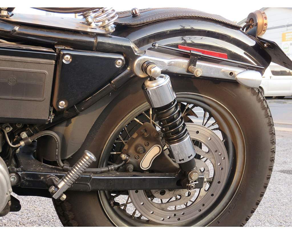 色:カバー:クローム スプリング:ブラックサイズ:取り付け部芯間:12インチ(約305mm)全長:約335mm適合車種:1979〜2003年式までのXLモデル1982〜1994年式までのFXRモデル素材:スチール内容物:リアショック×2ツール×1カラー×1セット注意事項:必ずRフェンダーとベルトガードのクリアランス確認及びショックアブソーバーの上下アライメント確認を行って下さい。必要に応じてフェンダー、ベルトガードをカットして使用して下さい。車高が変わるため、サイドスタンドの変更が必要になる可能性があります。商品説明:プリロード調整用のアジャストツールも付属していますので乗り方に合わせて調整して下さい。プリロードは5段階調整です。プリロードを調整する際には浸透性潤滑剤を使用してから回すと、スムーズに回ります。※右回しでプリロードが掛かり、左回しで緩みます。ちなみに2000年式以降のFXDXやFXDXTでも、ショックマウントスタッドを変更すれば適合可能になります