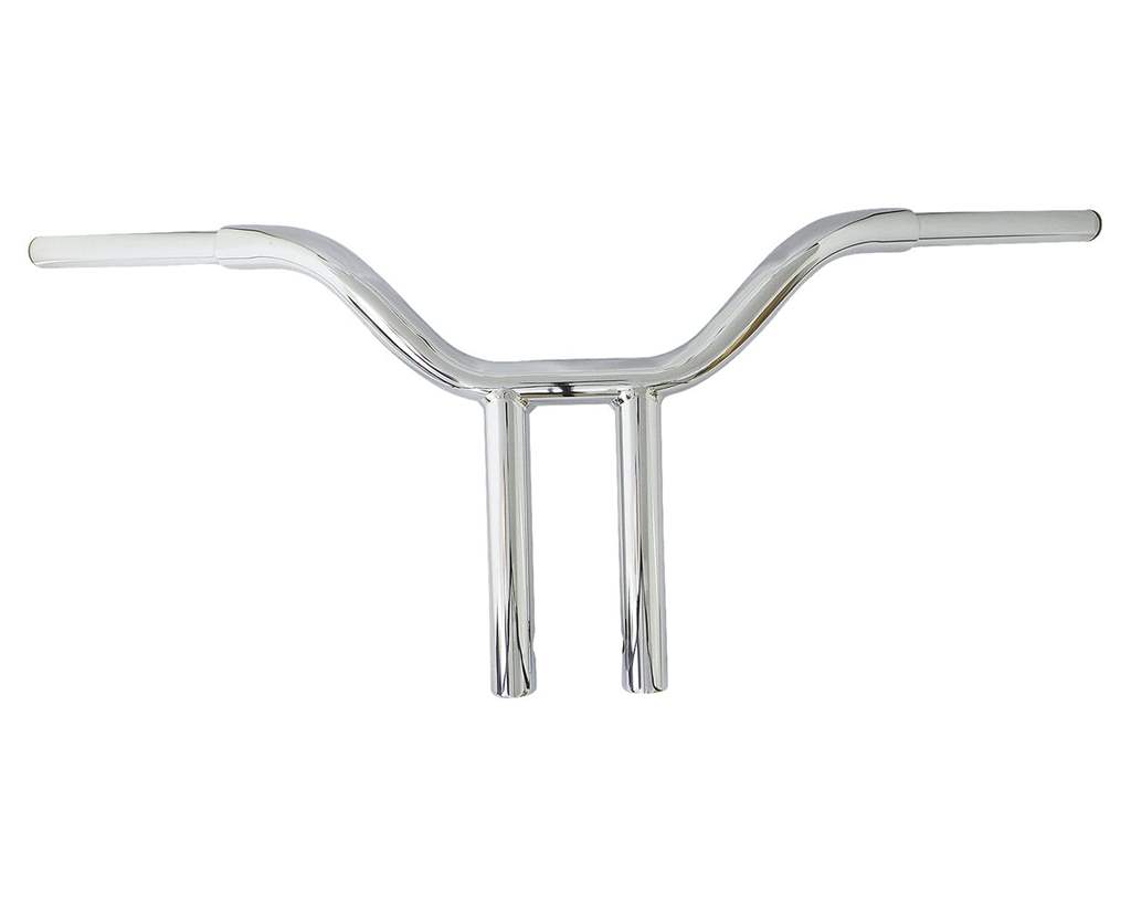 色:クロームサイズ:全幅:約830mm高さ:約330mmエンドライズ:約320mmプルバック:約145mmグリップ取り付け部:約190mm対応ライザーボルトサイズ:1/2-13素材:スチール内容物:ハンドル本体×1本注意事項:グリップの付け根にあたる部分とライザー底部に配線中通し用の穴が空いております。商品説明:迫力あるスタイルが人気のファットバー、更に迫力のライザーバースタイルです。太い部分が1-1/4in、細い部分が1inです。ライザー部分も迫力の1-1/4in!バイクがさらに大きく見えますよ。