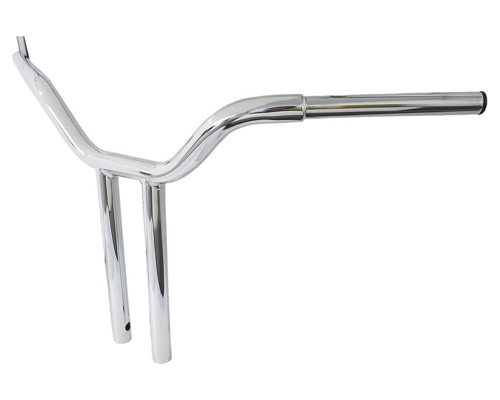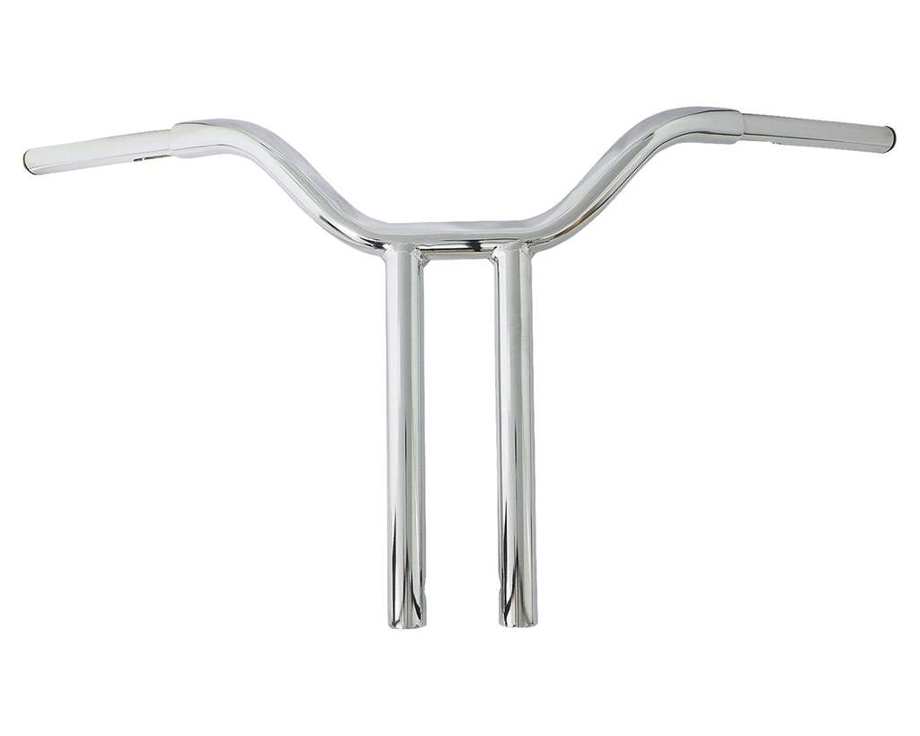 色:クロームサイズ:全幅:約830mm高さ:約410mmプルバック:約145mmエンドライズ:約430mmグリップ取り付け部:約190mm対応ライザーボルト:1/2-13素材:スチール内容物:ハンドル本体×1本注意事項:グリップの付け根にあたる部分とライザー底部に配線中通し用の穴が空いております。商品説明:迫力あるスタイルが人気のファットバー、更に迫力のライザーバースタイルです。太い部分が1-1/4in、細い部分が1inです。ライザー部分も迫力の1-1/4in!バイクがさらに大きく見えますよ。