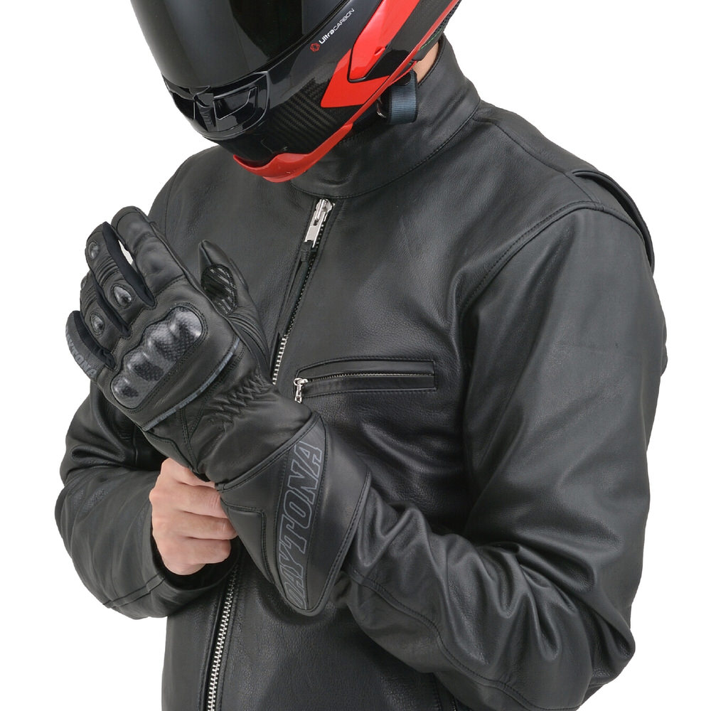 各所にプロテクターを装備し、多面に本革を使用することで安全性を確保したスポーティなグローブ。ロング丈でスポーツグローブらしさと防寒性を高めたモデル。ナックルプロテクターはフローティング構造を採用し、指また部にストレッチ素材を採用。ウインターグローブの操作性の悪さを低減し、長時間のライディングでも握力低減を防ぎます。防水防風フィルム入り。シーズン:秋冬素材: 本革(やぎ革)防水防風:中間層に防水透湿フィルムプロテクター:カーボン / パームスライダー:TPRタッチパネル対応※タッチパネル対応はグローブへの密着度や個人差により感度にばらつきがあります。※経年劣化や使用状況により防水フィルムが破損することがあります。