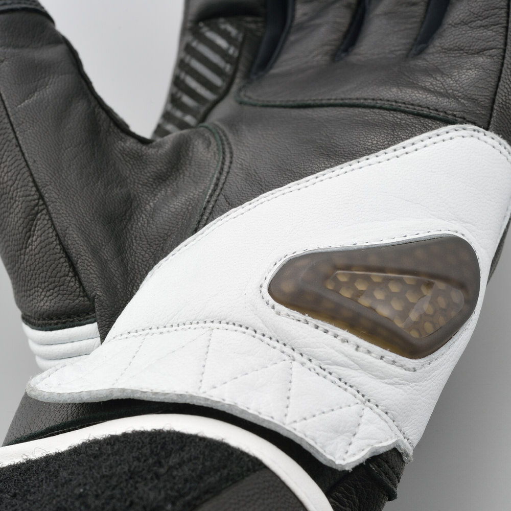 各所にプロテクターを装備し、多面に本革を使用することで安全性を確保したスポーティなグローブ。ロング丈でスポーツグローブらしさと防寒性を高めたモデル。ナックルプロテクターはフローティング構造を採用し、指また部にストレッチ素材を採用。ウインターグローブの操作性の悪さを低減し、長時間のライディングでも握力低減を防ぎます。防水防風フィルム入り。シーズン:秋冬素材: 本革(やぎ革)防水防風:中間層に防水透湿フィルムプロテクター:カーボン / パームスライダー:TPRタッチパネル対応※タッチパネル対応はグローブへの密着度や個人差により感度にばらつきがあります。※経年劣化や使用状況により防水フィルムが破損することがあります。