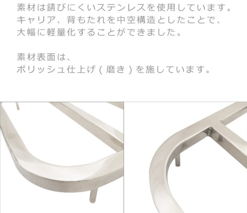 バックレストとキャリア部分は中空素材を使用し軽量化しています。