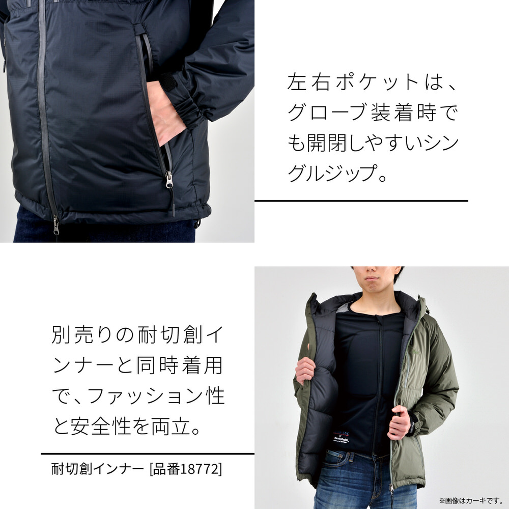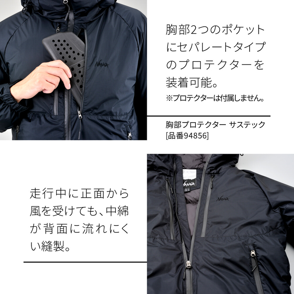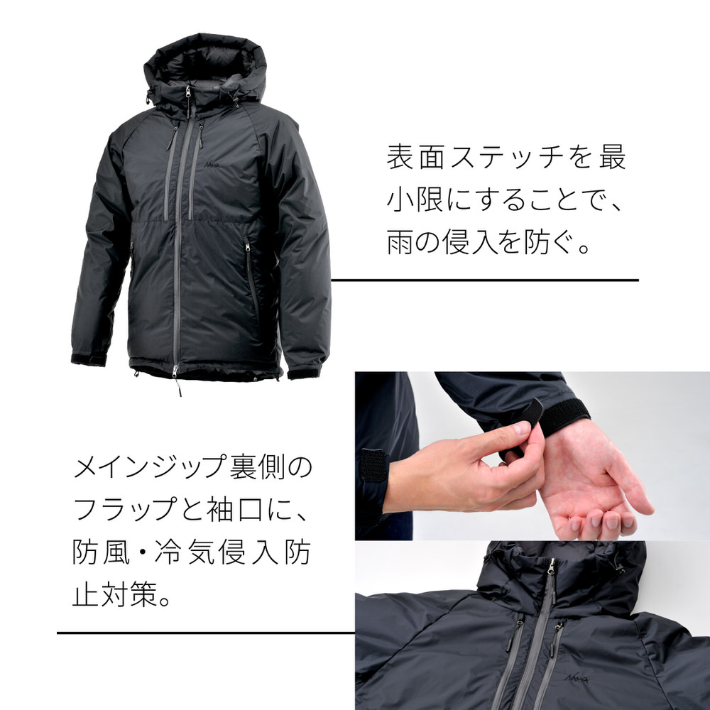 冬のライダーに、お洒落を。NANGA独自の防水透湿素材オーロラテックスを採用した、NANGAのフラッグシップモデル「AURORA Down Jacket」のデイトナ特別モデルです。メインジップをはじめ、ポケット類は全て止水ジップを使用。ポケットの内側には起毛素材、袖口はヌバックタイプのベルクロを取り付け、冷気の侵入を遮断。ジャケットの内側にはやわらかな生地を採用することで、羽毛が膨らみやすくなり、着用時の保温性やフィット感を高めます。少し大きめなシルエットと、ラグランスリーブを採用することで、冬場の厚い衣服の上から着用しても窮屈さを感じさせません。