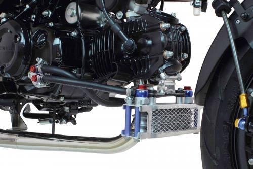 オイル取り出し口純正クラッチカバーのオイルフィルター部に専用のオイルフィルターカバーを装着し、オイルの取り出しを行います。オイルフィルターカバーの内部にはリリーフバルブ機構を備えています。更にネオジウムマグネットを内部に装備している為、エンジンオイルに混じった鉄粉を吸着し、オイルフィルターへの汚れを軽減します。コンパクトクール本体についてクーラー本体は冷却効果に優れたコンパクトクールを採用。オイルクーラーを取付けることで、エンジンボアアップに伴う油温上昇を抑えることが出来ます。オイルクーラープレート、ガードが標準装備。注意事項※ノーマルシリンダーヘッド、ノーマルクラッチカバー専用です。※悪路走行やオフロードでの使用は、行わないで下さい。※オイル量は通常規定オイル量に3フィン:約40ccを追加して下さい。※モンキー125(JB03)の場合、ノーマルマフラー・SP武川製スポーツマフラーには取付け出来ません。