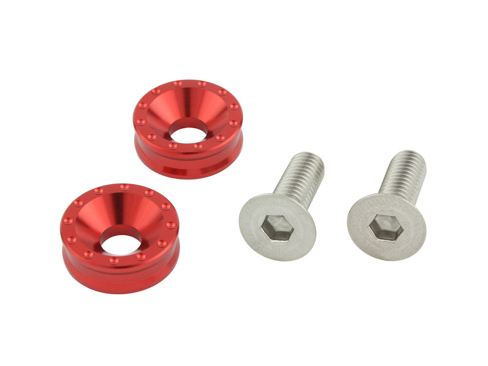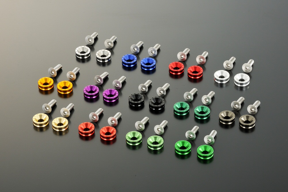 ナンバー周りのアクセントとなるライセンスプレートホルダーに新形状登場POSH社ライセンスプレートと合わせて使用することで、ナンバー周りのドレスアップがより一層際立ちます。◆アルミ削り出し/アルマイト・メッキ仕上げ◆ステンレス皿ネジM6X18mm付属◆2個入り◆外径約17.5mm/厚み6mm◆日本製