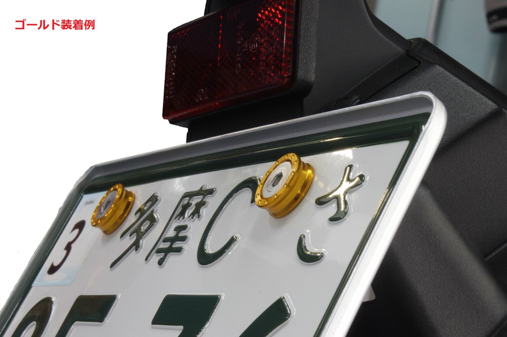 ナンバー周りのアクセントとなるライセンスプレートホルダーに新形状登場POSH社ライセンスプレートと合わせて使用することで、ナンバー周りのドレスアップがより一層際立ちます。◆アルミ削り出し/アルマイト・メッキ仕上げ◆ステンレス皿ネジM6X18mm付属◆2個入り◆外径約17.5mm/厚み6mm◆日本製