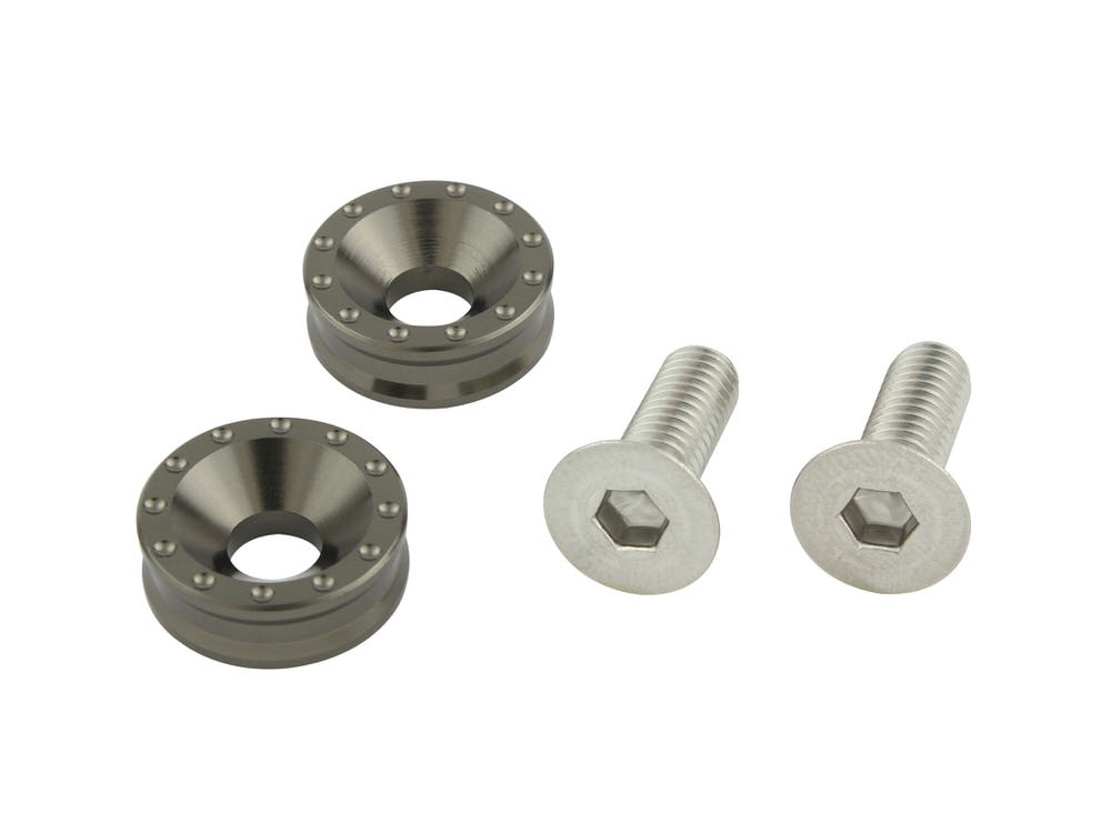 ナンバー周りのアクセントとなるライセンスプレートホルダーに新形状登場POSH社ライセンスプレートと合わせて使用することで、ナンバー周りのドレスアップがより一層際立ちます。◆アルミ削り出し/アルマイト・メッキ仕上げ◆ステンレス皿ネジM6X18mm付属◆2個入り◆外径約17.5mm/厚み6mm◆日本製